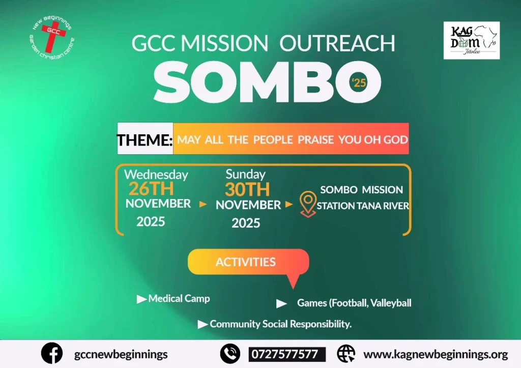 Join us for our annual GCC Mission Outreach at Sombo Mission Station, Tana River. Throughout the outreach, we’ll be hosting impactful activities including medical camps, community social responsibility initiatives, and sports events such as football and volleyball, all designed to touch lives both spiritually and physically.